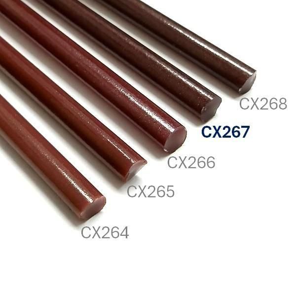 CX茶系のガラスロッドは、製造工程上、色ムラやマダラ、変形を含みます。